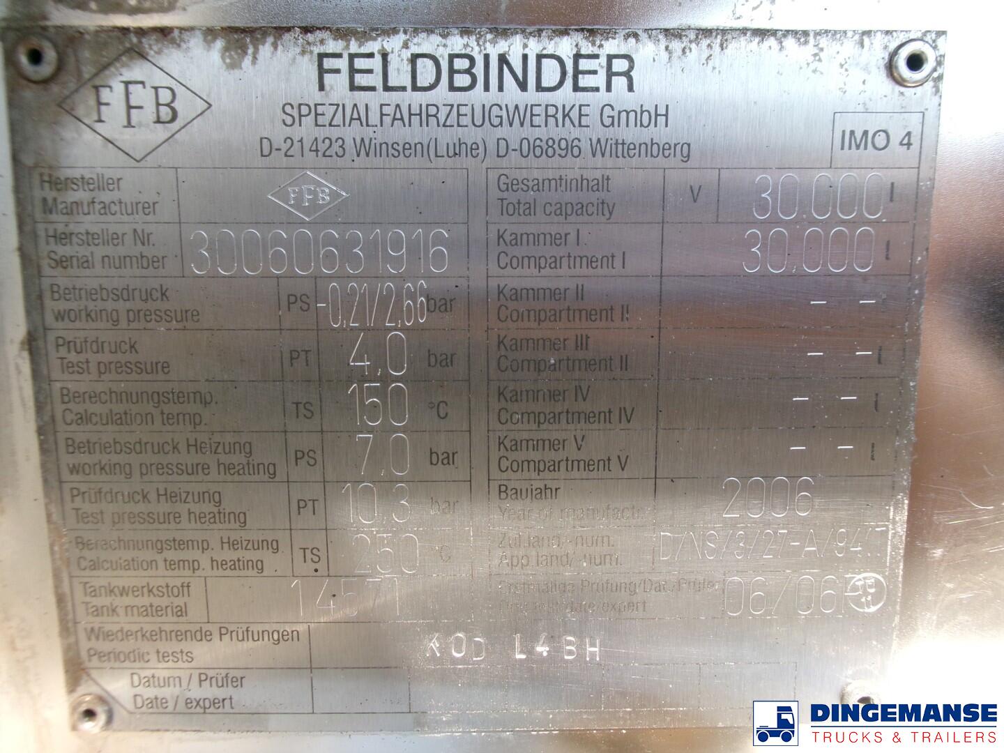 Feldbinder Chemical tank inox 30 m3 / 1 comp + pump
