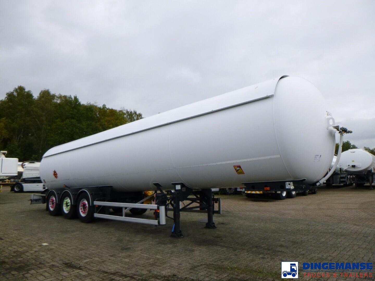 Robine steel gas (LPG) tank, capacity 51506 liter, 1 Compartment, Test pressure 25 bar, Max working pressure 19.3 bar, Year of construction 2008, Tank material code: P25BH // P 440 NJ4 NFA 36215, Air suspension, lift axle, Alloy wheels, ABS, Disc brakes, Mercedes axles, Shipment dimensions 1300x250x350 cm