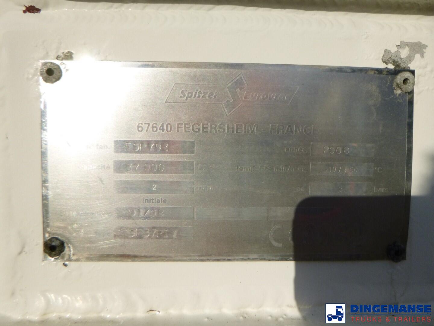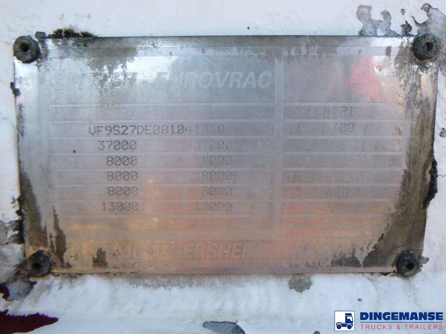 Aluminium powder tank (cement silo), capacity 37000 liters, 1 compartment, Year of construction 2008, Test pressure 3.0 bar, Max working pressure 2.0 bar, Air suspension, lift axle, Ror axles, Disc brakes, ABS, Alloy wheels, Shipment dimensions 1030x250x360 cm.