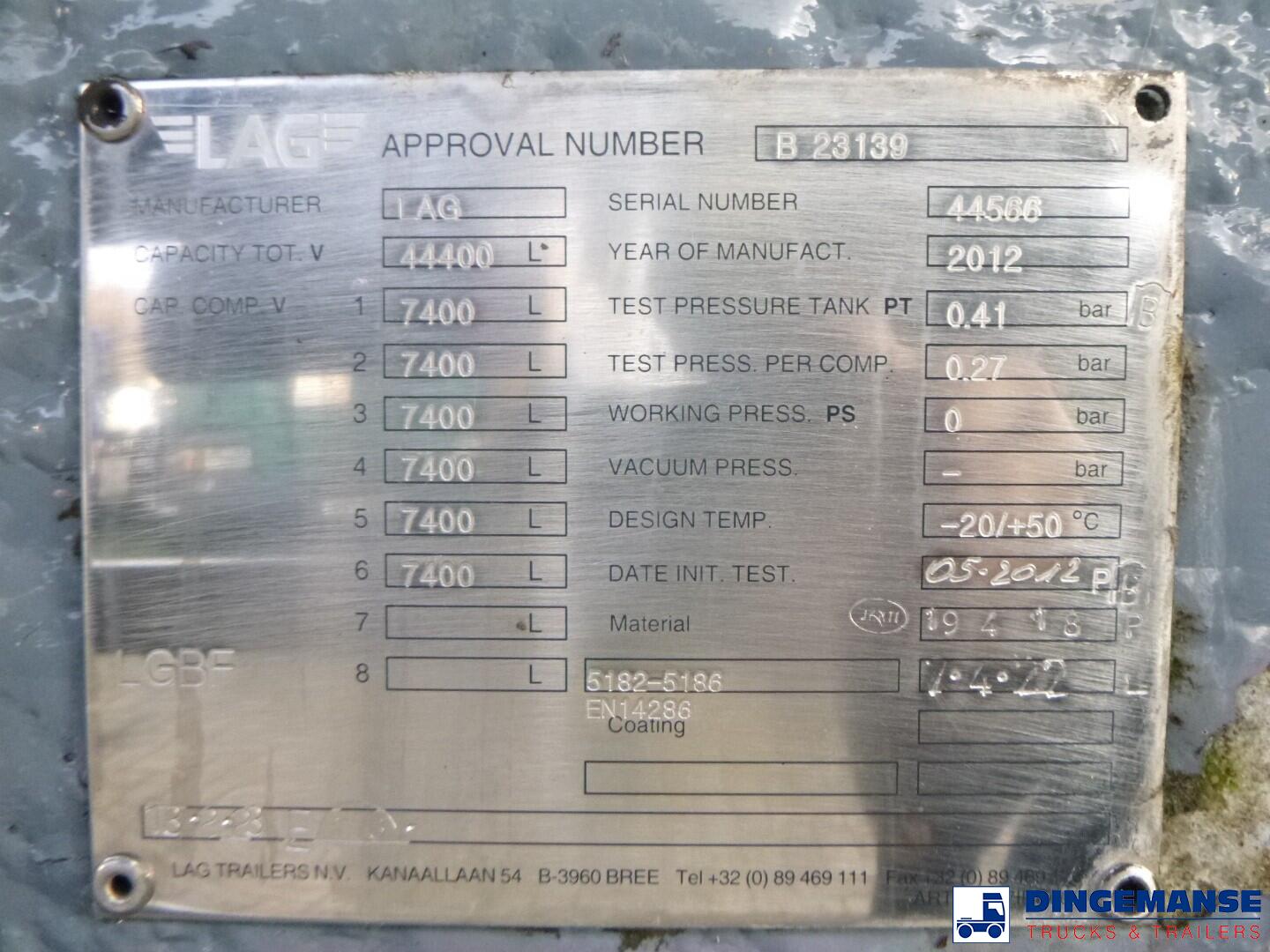 Meer informatie over deze L.A.G. Fuel tank alu 44.4 m3 / 6 comp + pump