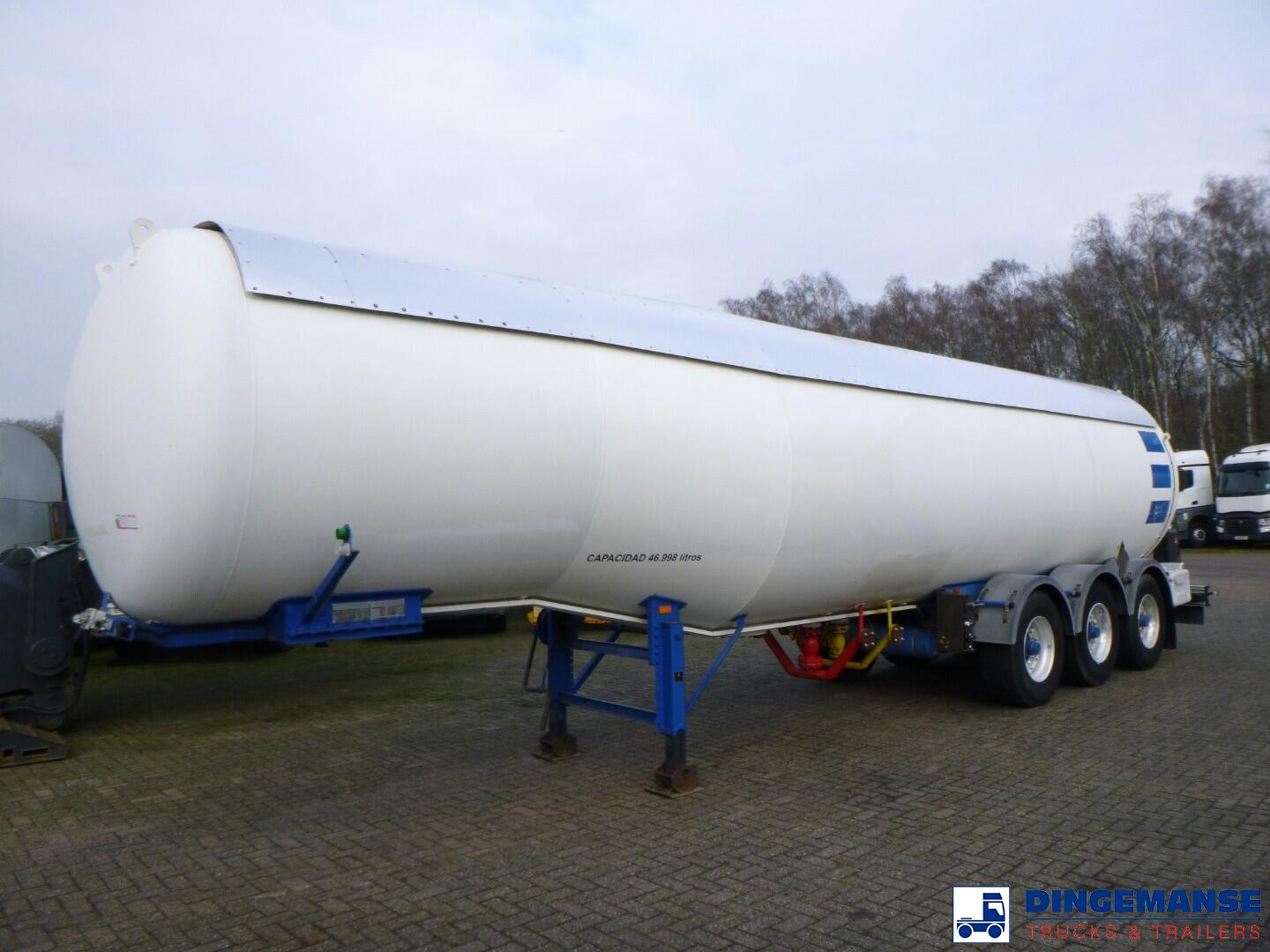 Steel gas (LPG) tank, Capacity 46998 liters, 1 compartment, Test pressure 26.0 bar, Max working pressure 18.0 bar, Year of construction 1991, Air  suspension, Drum brakes, BPW Eco axles, ABS, Shipment dimensions 1210x250x370 cm