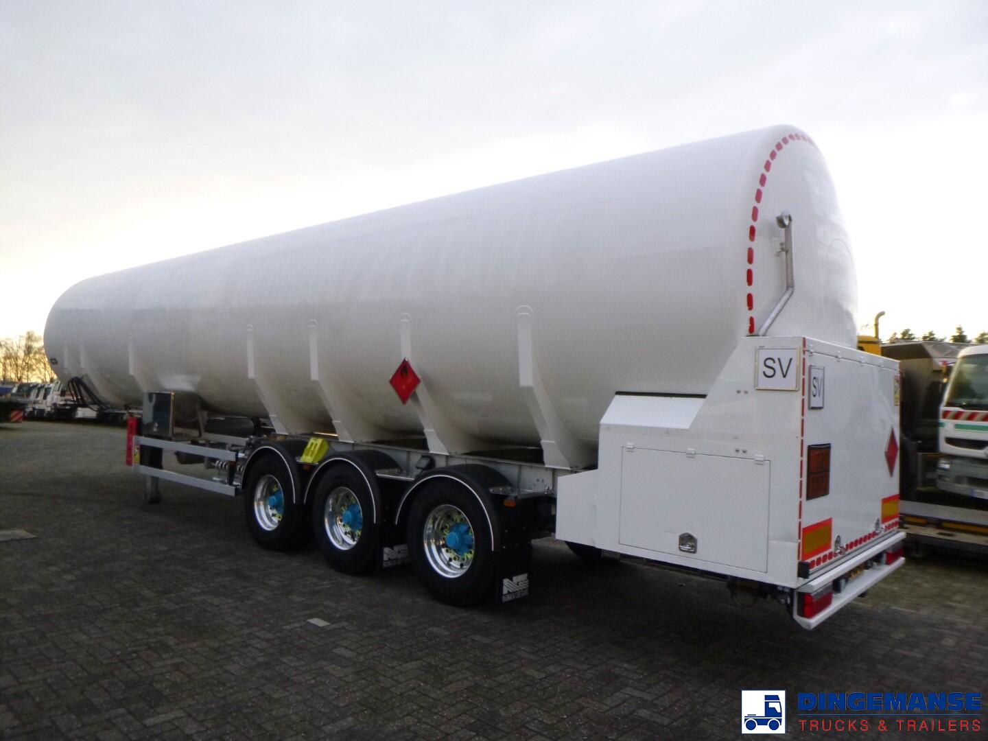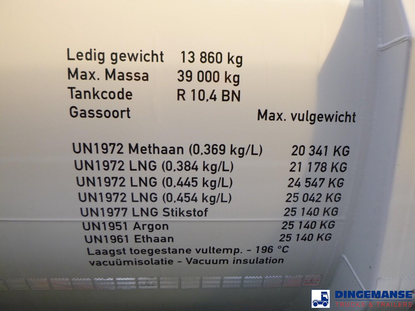 Stainless steel (inox) cryogenic tank, Capacity 58660 liters, 1 compartment, Year of construction 2018, Suitable for UN 1972 (LNG / liquid methane), UN 1977 (liquid nitrogen), UN 1951 (liquid argon), UN 1961 (liquid ethane), Tank material code 1.43111 EN 11028-7, Test pressure 10.4 bar, Max working pressure 7.0 bar, Hydraulic pump, Digital counter, Air suspension, BPW axles, Disc brakes, ABS, Alloy wheels, Shipment dimensions 1260x250x365 cm