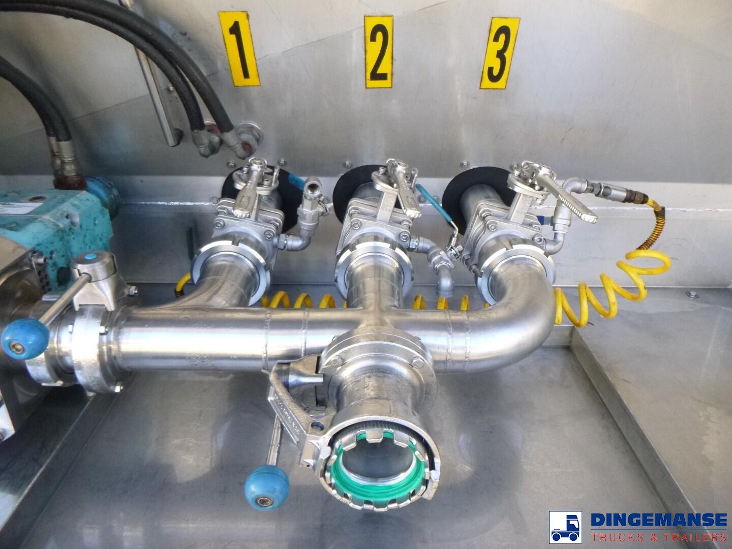 Insulated stainless steel food tank, Capacity 37500 liters, 3 Compartments (7500; 22500; 7500), Year of construction 2006, Hydraulic pump, Tank material code 1.4404 EN 10028-7, Test presssure 4.0 bar, Max working pressure 2.0 bar, Air suspension, BPW Eco Plus axles, Disc brakes, Alloy wheels, ABS, Shipment dimensions 1200x250x360 cm
