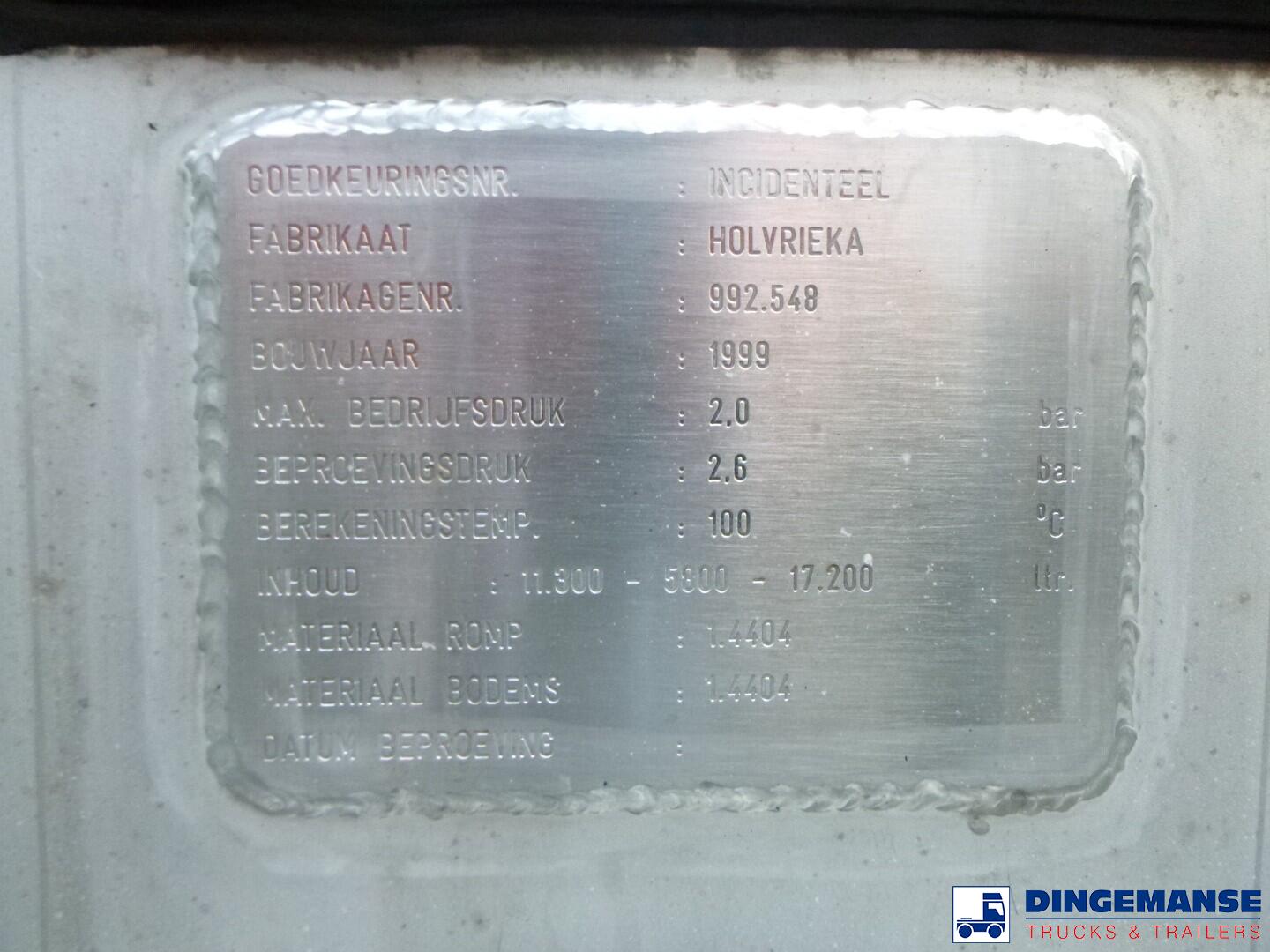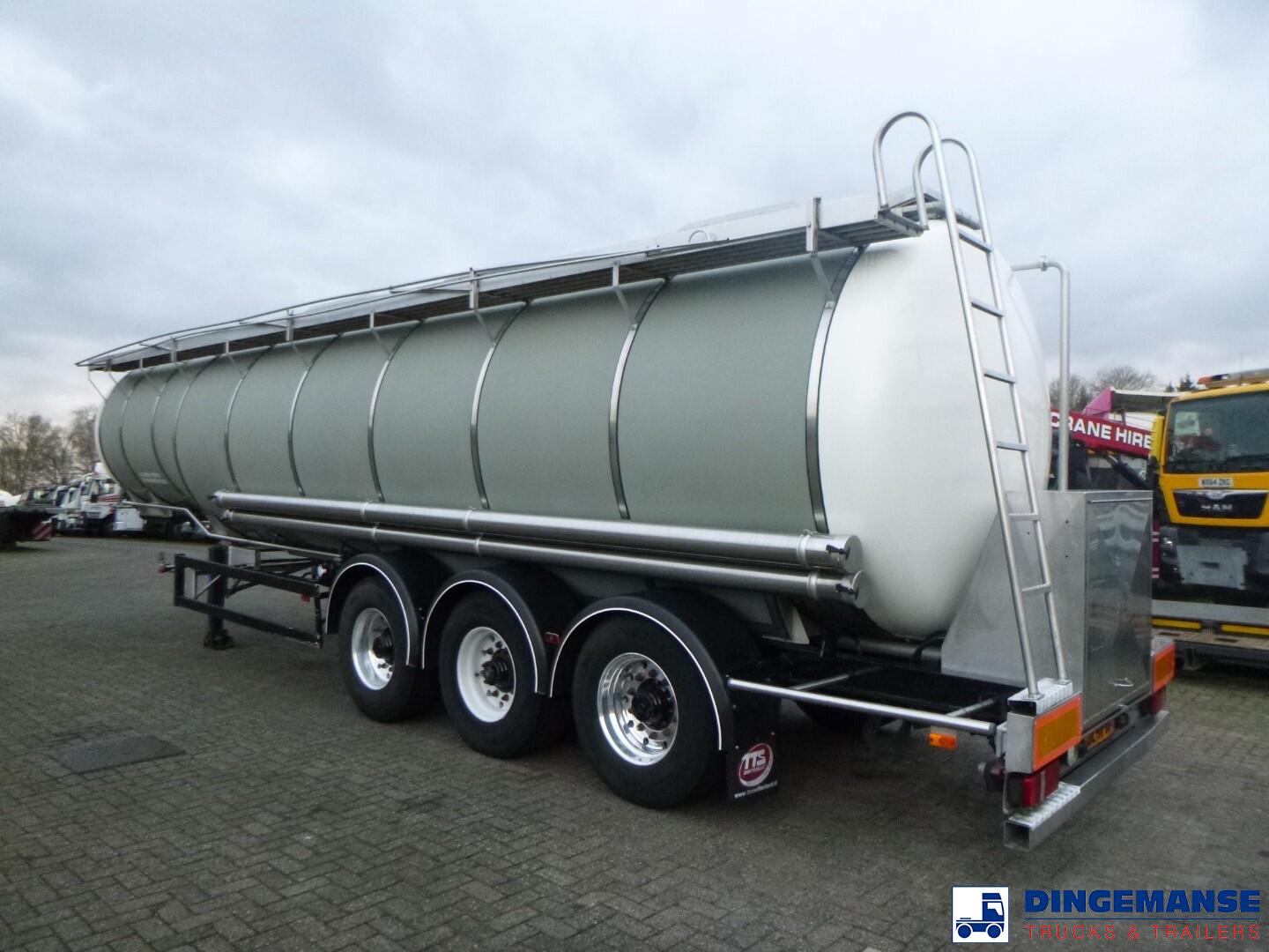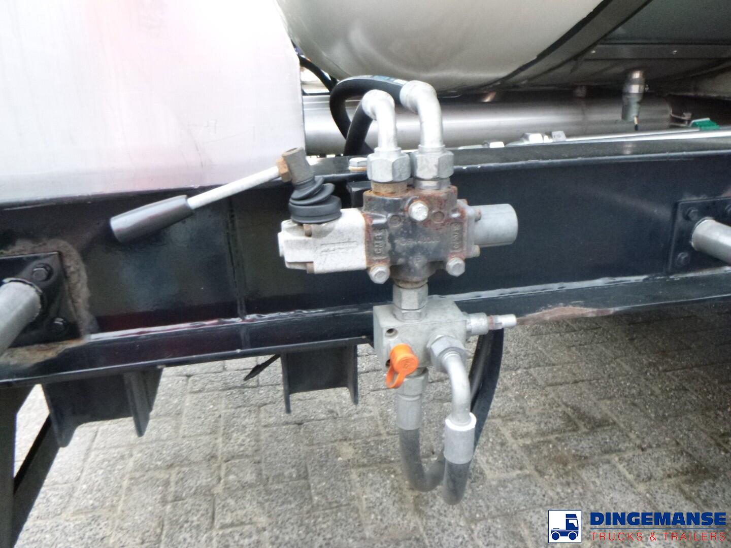 Insulated stainless steel food tank, Capacity 34400 liters, 3 Compartments (11300;5800;17200), Year of construction 1999, Tank material code 1.4404, Test pressure 2.6 bar, Max working pressure 2.0 bar, Hydraulic discharge pump, Air suspension SAF axles, Drum brakes, Lift axle, ABS, Alloy wheels, Shipment dimensions 1220x250x360 cm