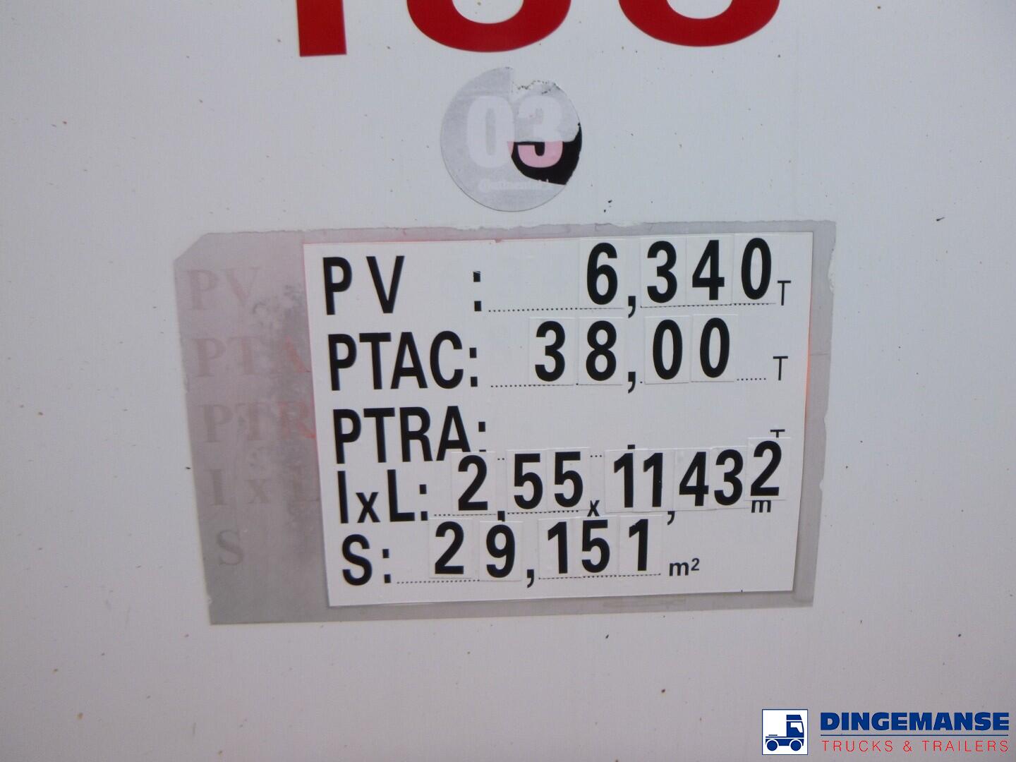 Insulated stainless steel food tank, Capacity 29000 liters, 4 Compartments 8000;4000;7000;10000, Internal cleanig system, Year of construction 2005, Air suspension, SMB axles, Disc brakes, ABS, Alloy wheels, Shipment dimensions 1145x250x360 cm