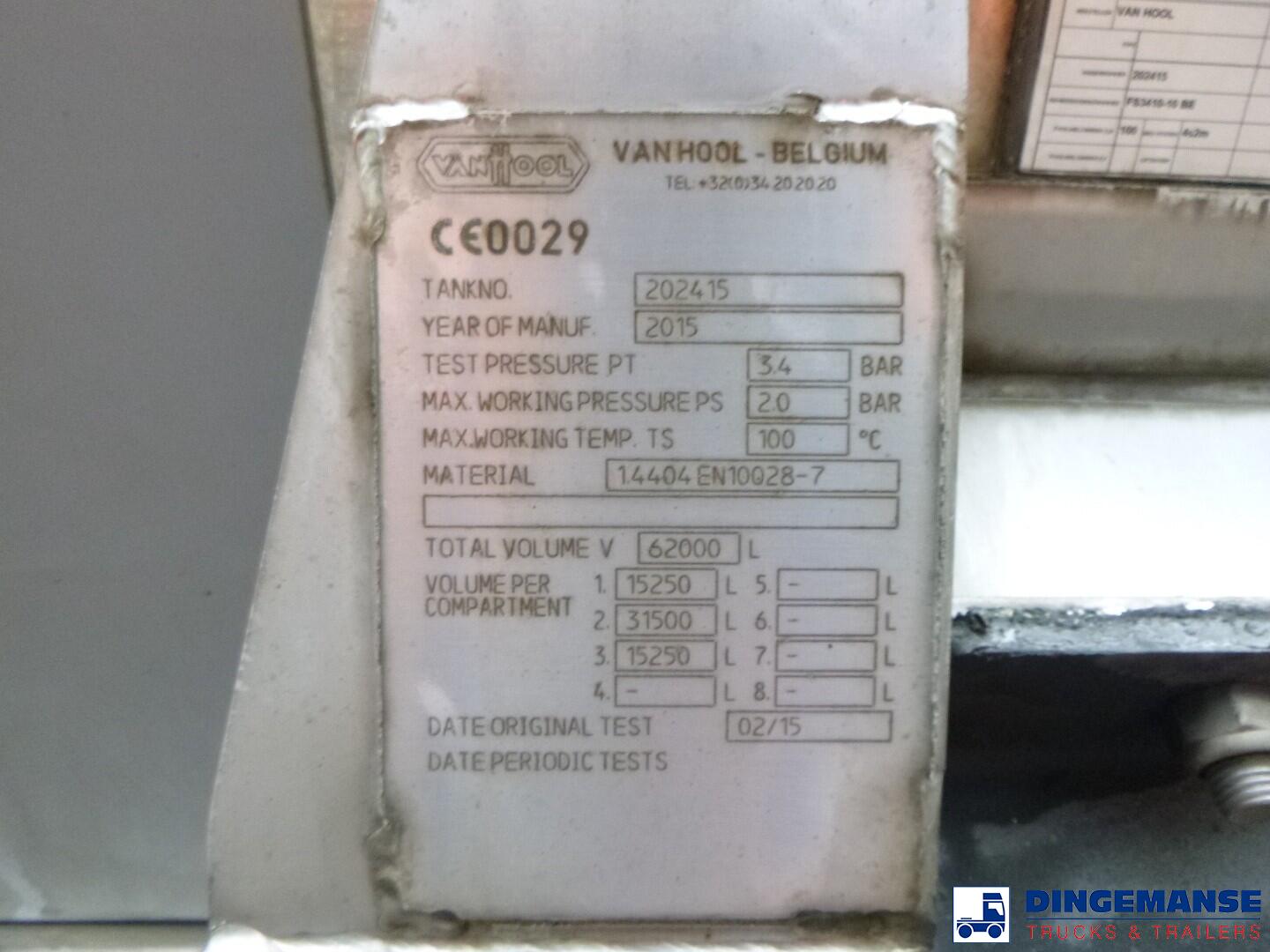 Van Hool Food tank inox 62 m3 / 3 comp