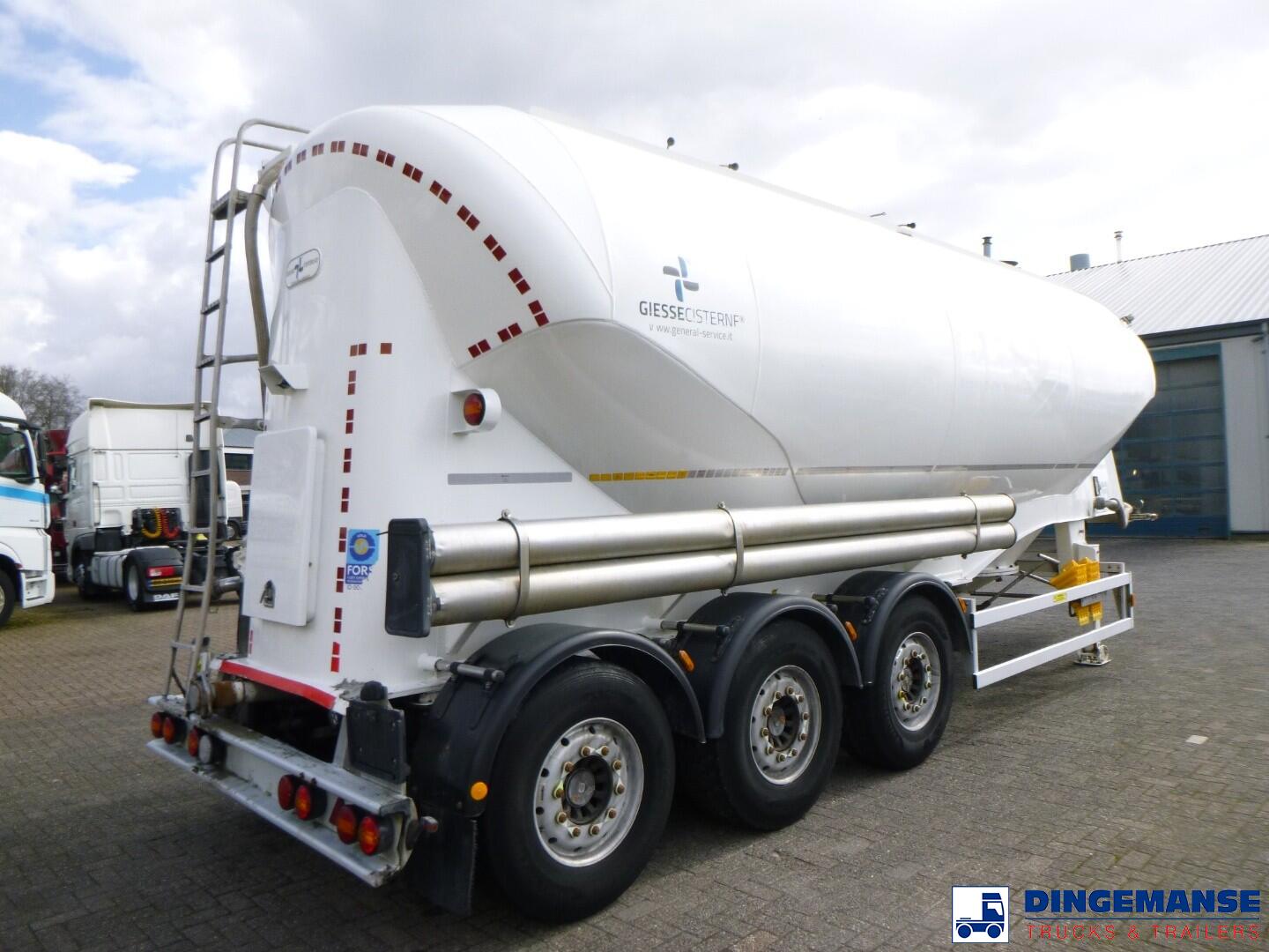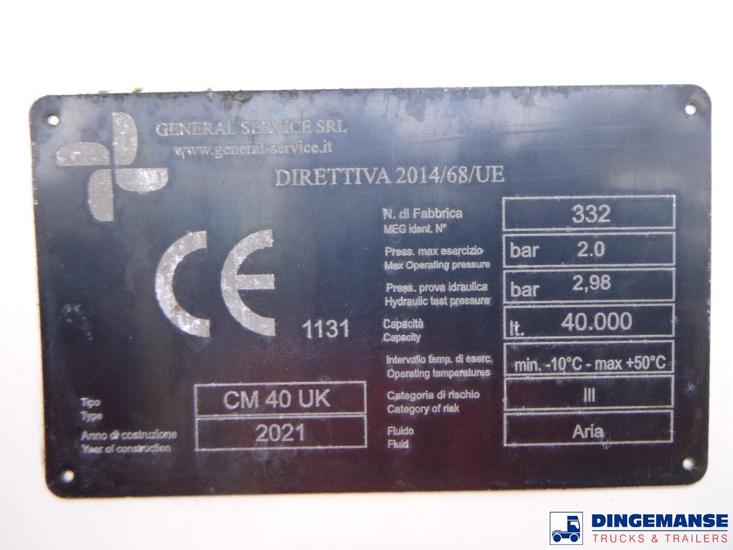 Aluminium powder tank / cement silo, Capacity 40000 liters, 1 Compartment, Year of construction 2021, Test pressure 2.98 bar, Max working pressure 2.0 bar, Alloy wheels, 2 lift axles, ABS, SAF axles, Disc brakes, Shipment dimensions 1040x255x360 cm