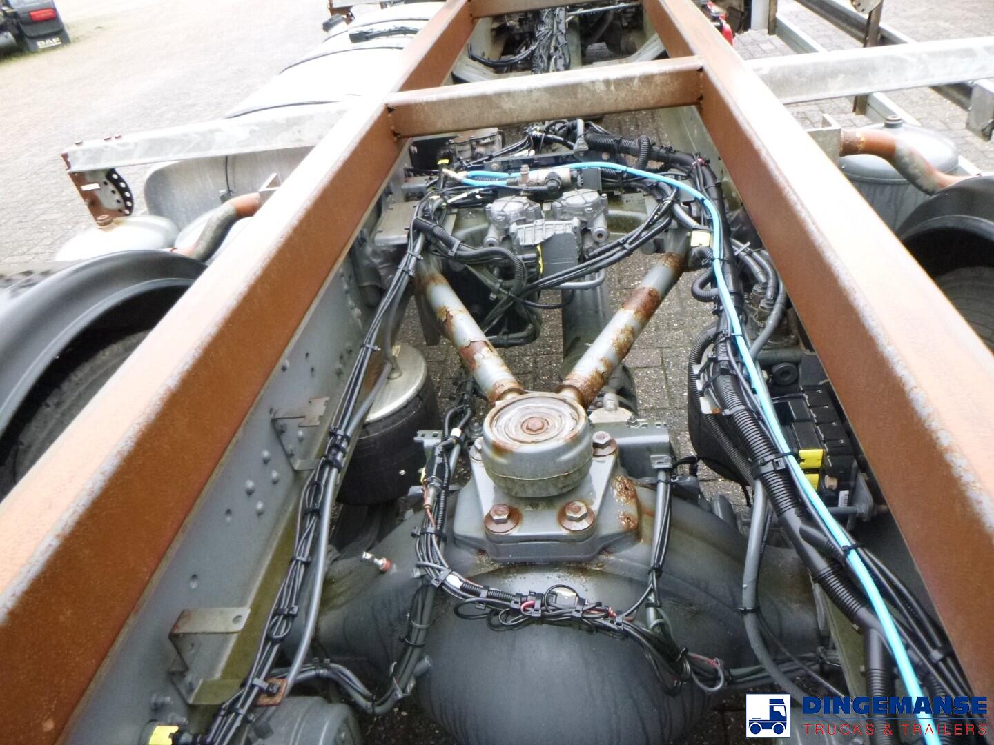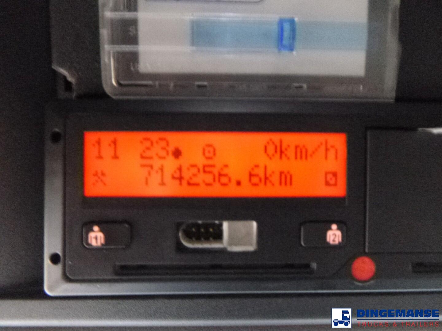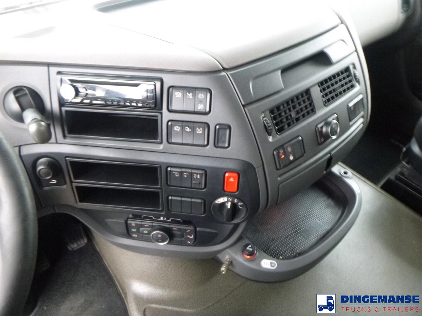 Truck 4x2, Euro 6, Adblue, Automatic gearbox, Diff lock, Retarder, Air front suspension, Air rear suspension, Lemasson superstructure for 20 ft. containers, Pommier hitch, Lowerable bumper, Sleep cabin, 2 beds, Airconditioning, Night heater, Digital tachograph, Truck lenght 1025 cm // Krone trailer for 20 ft. containers, Hitch height 35 cm, Air suspension, Disc brakes, BPW axles, ABS, Trailer lenght + connection bar 950 cm // Total shipment dimensions 1840x250x360 cm