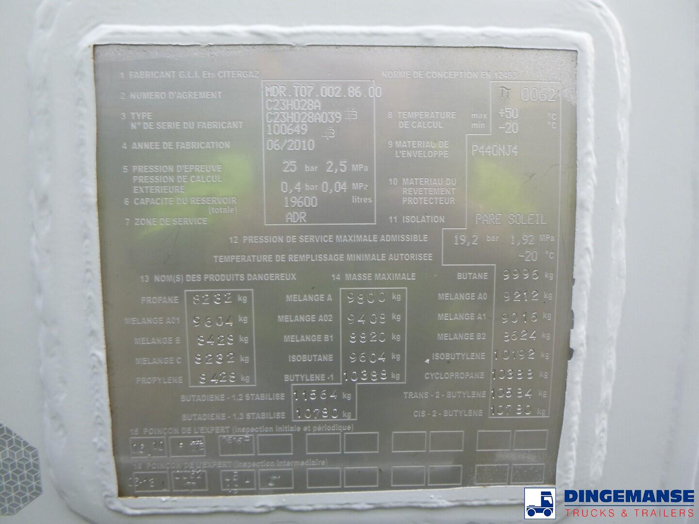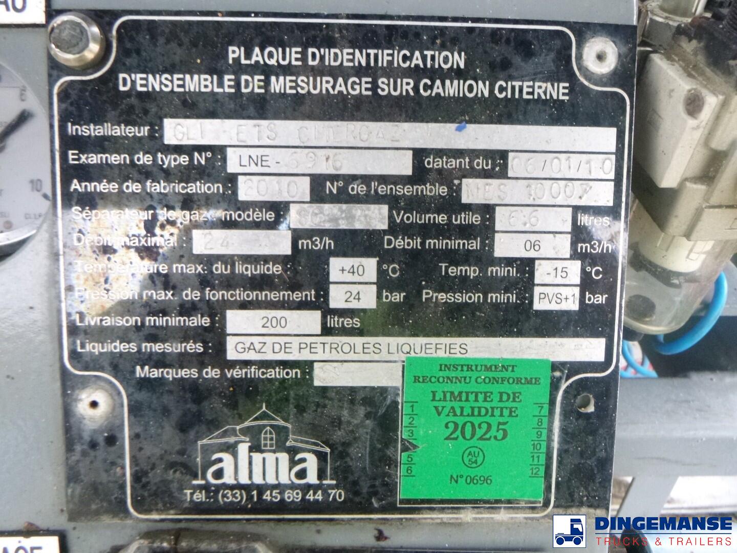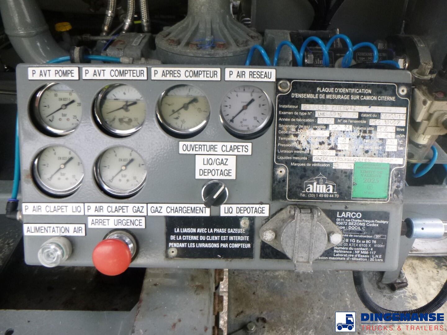 Steel LPG tank, Capacity 19600 liters, 1 Compartment, Year of construction 2010, Test pressure 25 bar, Max working pressure 19.2 bar, Tank material code P440NJ4, Hose reel, Digital counter, Hydraulic discharge pump, Truck 4x2, Euro 5, Adblue, Dxi engine, Manual gearbox with 8 gears, Diff lock, Steel front suspension, Air rear suspension, Airconditioning, Digital tachograph, Shipment dimensions 800x250x350 cm